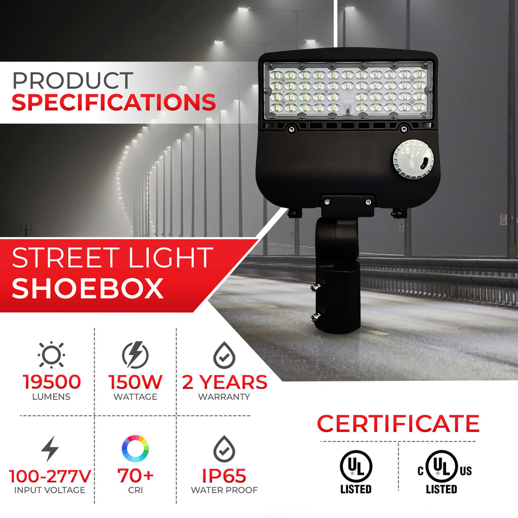 This 150W Shoebox Street Light is ideal for a variety of outdoor lighting applications, including: