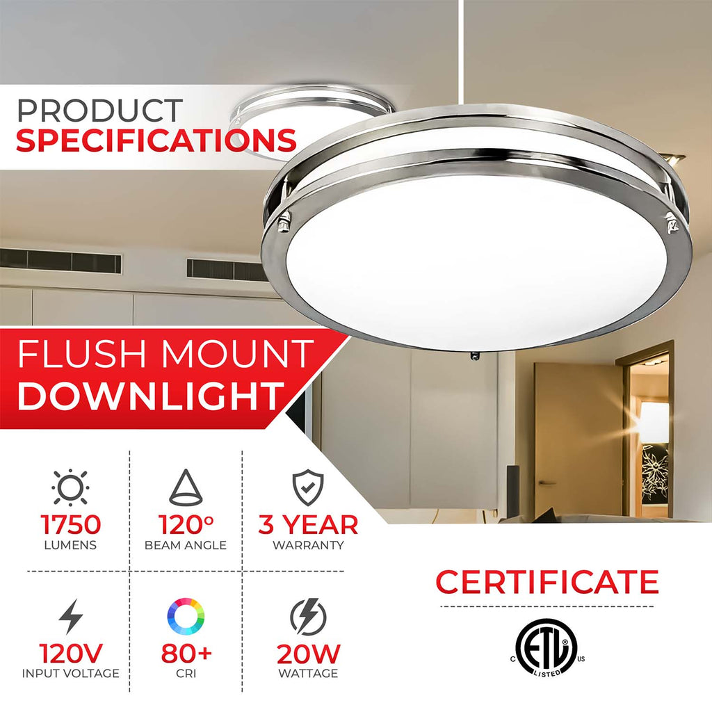 Stylish Design: The 16" Flush Mount Ceiling Light, complete with a brushed nickel finish, brings a dash of contemporary style to any room. Elevate your space with this beautiful and functional piece.