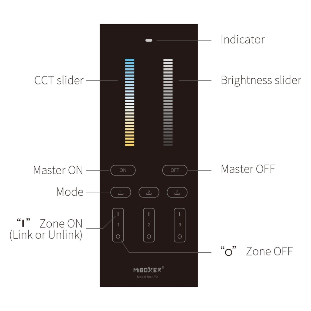 Y2 CCT Vertical Remote - 2.4GHz Wireless - 30m Range | MiBoxer/Mi-Light Compatible