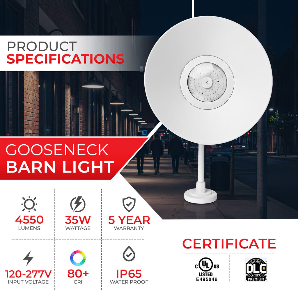 Energy Efficient: This LED Gooseneck Light offers excellent illumination at 35W power, making it an energy-efficient lighting solution for your space.