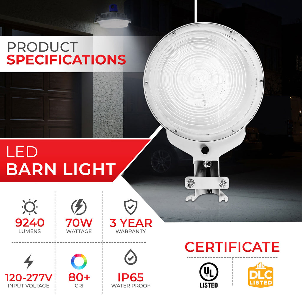 70W LED Barn Light - CCT Selectable 5000K - IP65 | AC 120-277V | TS-BL02-70K-50W