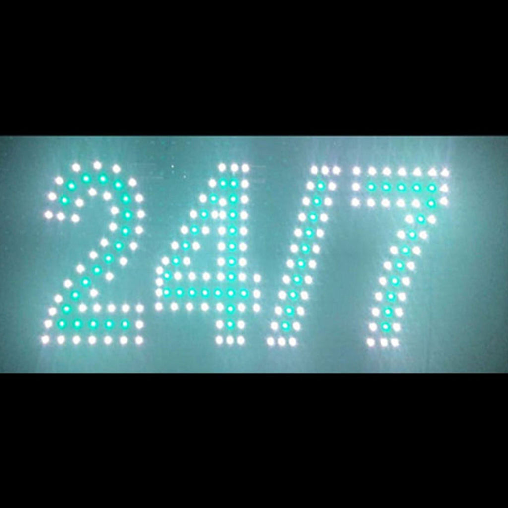 Modern Eye-Catching Design: Showcase your business with a vibrant 9x20 LED 24/7 sign, featuring crisp cool white and green inline lighting that captures attention instantly.