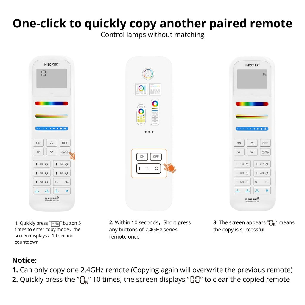 Extensive Zone Control: Supports up to 100 zones with quick pairing and copying function for other remotes.