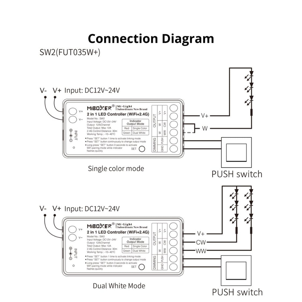 Product Name SW2 2-in-1 LED Controller Model No. SW2 (FUT035W+)