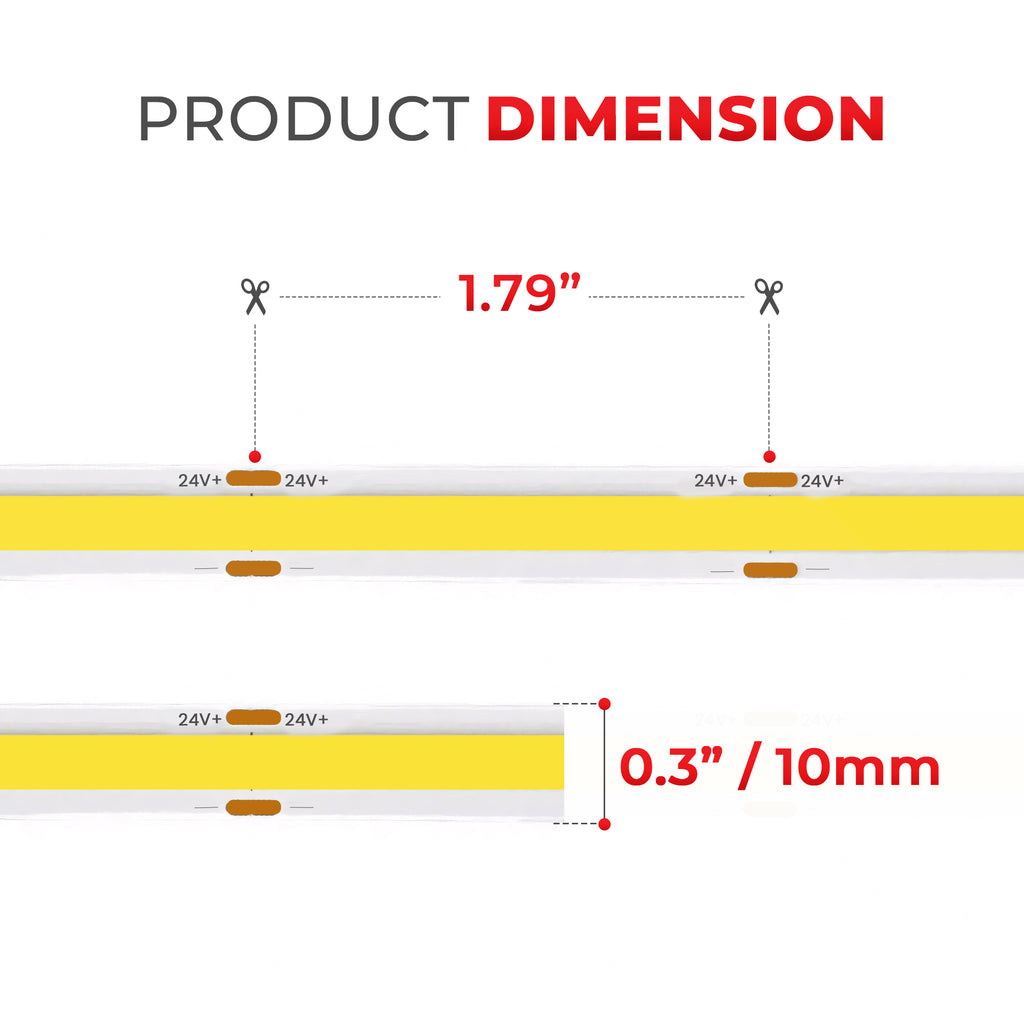 Advanced COB Technology: The W-Series Static White DotFree COB LED Strip Light utilizes cutting-edge COB (Chip on Board) technology, ensuring uniform lighting with no visible hot spots, providing a clean and continuous glow.